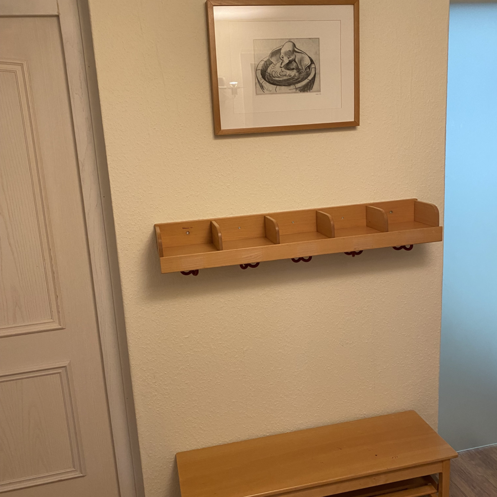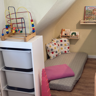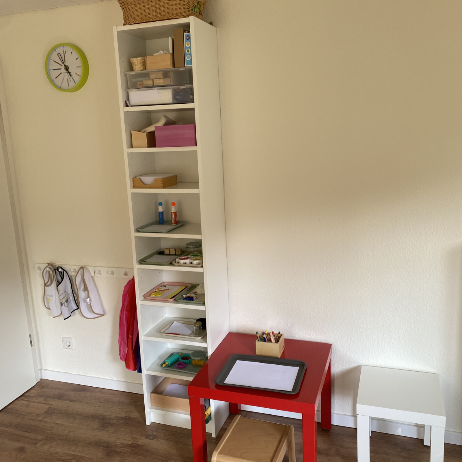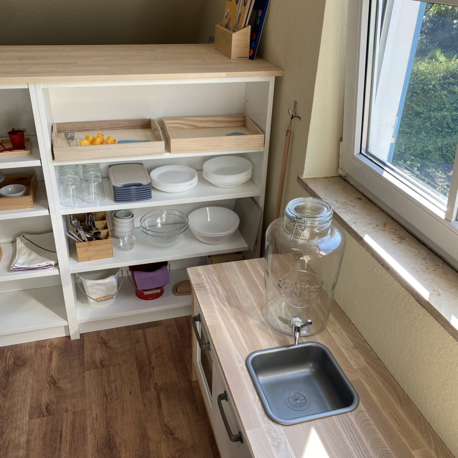 Kinder haben besondere Bedürfnisse an die Einrichtung. Um sich auszuruhen gibt es einen Rückzugsbereich im Raum. Für den Mittagsschlaf hat jedes Kind seine eigenen Matratze. Die Küche ist besonders wichtig und auf die Betrübnisse der Kinder angepasst, so können wir gemeinsam das Frühstück vorbereiten hier bereiten wir und die Mahlzeiten zusammen am großen Tisch schmecken lassen. Der Betreuungsraum ist in Räumen verschiedene Bereiche strukturiert, das Angebot und die Materialen werden je nach den Bedürfnissen und Entwicklungsstand der Kinder angepasst.
